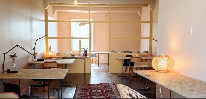Réparti sur trois niveaux, l’espace accueille un open space, une cuisine partagée, un atelier de création ainsi qu’une salle dédiée aux réunions et aux ateliers créatifs, dans une ambiance conviviale. Nous souhaitons en faire un lieu chaleureux et accessible à toutes et à tous, où l’on peut venir travailler pour une journée, quelques semaines ou plusieurs mois.