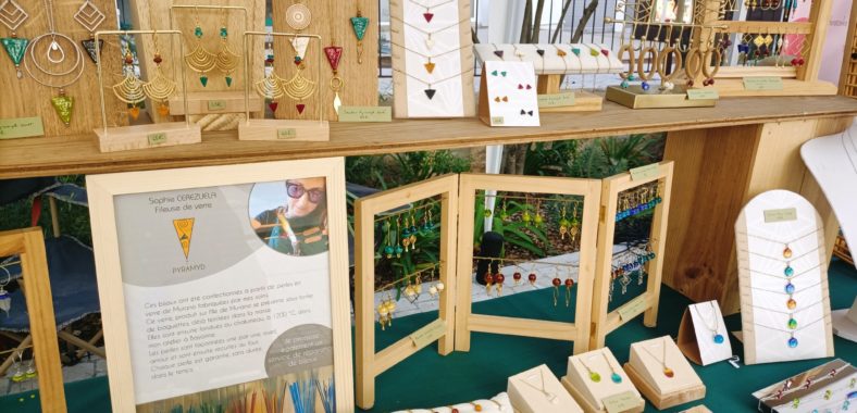 Je suis fileuse de verre au chalumeau. Je fabrique des perles en verre de Murano que je monte ensuite à bijoux. Je propose aussi un service de réparation de bijoux. Rendez-vous dans le quartier Saint Esprit à Bayonne !